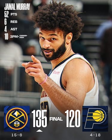 Terza vittoria nelle ultime cinque partite per i Nuggets, che fanno sempre gara di testa grazie a un parziale di 22-3 nel secondo quarto toccando anche il +29 e mantenendo sempre almeno 13 lunghezze di vantaggio nel quarto periodo. Il mattatore della serata è Jamal Murray, che va a tre punti dal suo massimo in carriera realizzandone 52 con uno spettacolare 19/25 dal campo, di cui 10/11 da tre punti (nuovo career high), mentre Nikola Jokic manca la tripla doppia solo per due rimbalzi (24 punti, 8 rimbalzi e 13 assist)