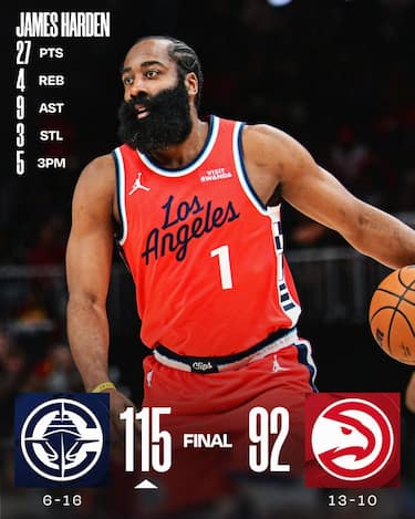 I Clippers tornano a vincere dopo cinque sconfitte in fila e dopo l’allontanamento di Chris Paul, ringraziando i 27 punti con 9 assist di James Harden e i 21 di Kawhi Leonard ma anche l’assenza tra gli Hawks di Jalen Johnson per un indurimento al polpaccio (oltre ai lungodegenti Trae Young e Kristaps Porzingis). Atlanta fatica enormemente in attacco e non va oltre i 21 punti di Nickeil Alexander-Walker, mentre i Clippers hanno tutt’altra aggressività per trovare la sesta vittoria di questa stagione