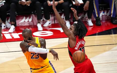 - Con il punteggio in parità a quota 120 e il cronometro della partita che stava per scadere, LeBron James ha deciso di passare la palla ad un compagno libero invece che tirare. Il risultato? La tripla di Rui Hachimura ha regalato la vittoria in trasferta a Toronto ai Lakers e per il super veterano, autore di una prova da 8 punti, 11 assist e 6 rimbalzi, si è chiusa una striscia di ben 1.297 partite consecutive con almeno 10 punti segnati in regular season