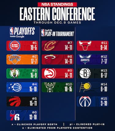 I successi di Knicks e Magic valgono ovviamente anche per la regular season, con New York che solidifica il proprio secondo posto alle spalle di Detroit e Orlando che approfitta del ko di Toronto per scavalcarla in classifica. Miami a sua volta viene raggiunta da Cleveland e Atlanta in zona play-in
