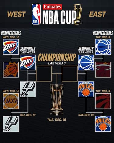 Si definisce così il tabellone delle semifinali della NBA Cup: New York Knicks e Orlando Magic si affronteranno sabato 13 dicembre alle 23.30 nella prima semifinale per decidere la finalista dell’Est, mentre l’altra semifinale tra Oklahoma City Thunder e San Antonio Spurs comincerà subito dopo alle 3 del mattino per decidere la finalista dell’Ovest. La finale è in programma nella notte tra martedì 16 e mercoledì 17 dicembre alle 2.30, sempre a Las Vegas