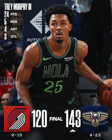 I Pelicans ritrovano un Jordan Poole da 22 punti dopo aver saltato le ultime 18 partite per un infortunio al quadricipite e tornano a vincere dopo sette sconfitte in fila, rifilando 143 punti ai Blazers. Ad accompagnare Poole ci sono i 24 di Trey Murphy e il career-high pareggiato da Bryce McGowens, infallibile dall’arco (5/5) per chiudere a quota 23. I 21 di Shaedon Sharpe invece non riescono a evitare la sesta sconfitta nelle ultime sette di Portland, costretti a far partire Kris Murray da centro perché tutti gli altri lunghi erano indisponibili e conseguentemente massacrati nel pitturato (88-62 il conteggio finale)