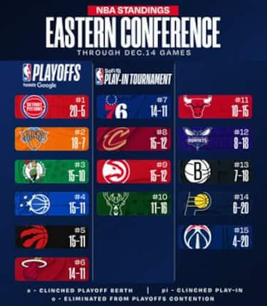 Detroit e New York si staccano dal resto del gruppo, anche perché dalla terza all’ottava posizione perdono tutte le squadre. Solo gli Hawks con il loro successo agganciano di nuovo Cleveland in zona play-in, mentre Brooklyn e Charlotte vincono tra le squadre in fondo alla conference