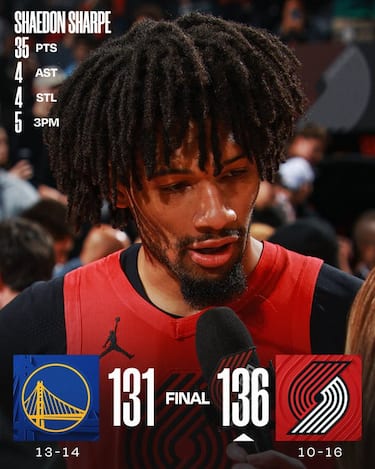 I Blazers tornano a vincere dopo tre sconfitte in fila ringraziando i 35 punti a testa di Jerami Grant e Shaedon Sharpe, spuntandola in un finale punto a punto grazie ai 40 punti realizzati nel solo quarto periodo e mantenendo la calma nonostante un monumentale Steph Curry. Alla sua seconda partita dopo il rientro in campo, Curry ne mette 48 con il suo massimo stagionale da 12 triple a segno, la 28^ volta che realizza 10 o più conclusioni da tre punti (rappresentano il 25% nella storia NBA). Il rientro di Draymond Green non basta però agli Warriors, che tornano ad avere un record inferiore al 50%