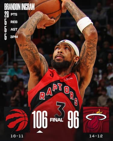 Momento non facile per i Miami Heat che cadono in casa contro i Toronto Raptors e arrivano a 5 sconfitte in fila. Viceversa i canadesi si rialzano e chiudono una serie di 4 stop consecutivi. Gli Heat, senza Tyler Herro, sono a +5 all’inizio del quarto periodo ma lì subiscono un break di 17-2 che ribalta la gara: la squadra di Spoeltra torna poi a -4 con 1:28 da giocare, ma Shead e Barnes sigillano il risultato in favore di Toronto, guidata dai 28 punti di Ingram, oltre ai 15 di Quickley e ai 17 con 10 rimbalzi di Barnes. Per Miami, tenuta per la prima volta in stagione sotto i 100 punti segnati, non sono sufficienti i i 20 punti a testa di Adebayo e di Powell, e i 12 di Davion Mitchell. Parte in quintetto Simone Fontecchio, autore di 3 punti (1 su 4 da tre) con 4 rimbalzi, 2 assist e 2 perse in 26 minuti sul parquet.