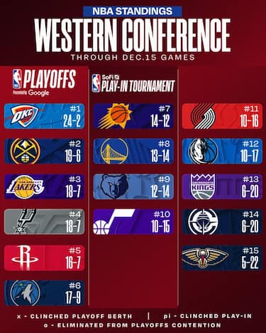 I Denver Nuggets si prendono il secondo posto ad Ovest alle spalle dei dominanti Thunder grazie al successo sugli Houston Rockets, distanti ora 2 partite da Jokic e compagni. Le vittorie della notte portano Memphis e Utah in zona Play-In, pur con record negativo. Dallas è appena più indietro mentre i Los Angeles Clippers incassano la nona sconfitta nelle ultime 10 gare e sono penultimi.