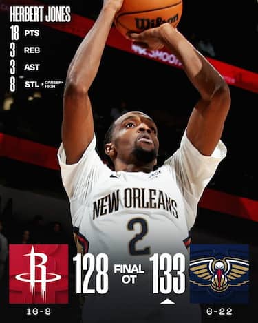 Il risultato più incredibile della notte arriva dalla Louisiana, dove i Pelicans rimontano 25 punti di svantaggio nel terzo quarto ai Rockets e li battono dopo un tempo supplementare. Il grande protagonista è Saddiq Bey, autore di 21 dei suoi 29 punti dopo l’intervallo, accompagnato dai 27 di Trey Murphy e i 18 con 8 recuperi di Herb Jones (massimo in carriera) per vincere la terza partita in fila, dopo averne vinte solo 3 delle prime 25 disputate. Houston ha il tiro per vincerla nei regolamentari con Alperen Sengun (28 punti, avendo sulla coscienza anche due liberi sbagliati nell’ultimo minuto di gioco) e per pareggiarla due volte nel supplementare con Reed Sheppard, ma li sbaglia tutti e vanifica anche i 32 punti di Kevin Durant
