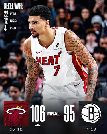 Gli Heat tornano a vincere dopo cinque sconfitte in fila, conquistando solamente il loro secondo successo del mese di dicembre. Norman Powell segna 24 punti e Kel’el Ware chiude con 22+12, trovando l’accelerazione giusta nel finale di gara per scrollarsi definitivamente di dosso i padroni di casa, che si fermano ai 28 punti del solito Michael Porter Jr. Per Simone Fontecchio 7 punti, 4 rimbalzi e 2 assist con 2/7 al tiro (di cui 1/3 da tre) e 2/2 ai liberi in 22 minuti uscendo dalla panchina