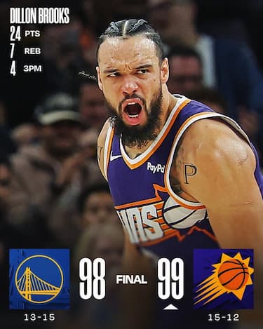 Finale pazzo tra Suns e Warriors. Sopra di 5 a 38.3 secondi dalla fine, Dillon Brooks commette una follia colpendo Steph Curry allo stomaco su un tentativo da tre punti, venendo punito con un fallo flagrant. A due tiri liberi a segno di Curry fa seguito una tripla di Jimmy Butler per pareggiare a quota 96, ma Devin Booker (25 punti di cui 23 nella ripresa) va a segno dalla media distanza per il +2, a cui rispondono due tiri liberi a segno di Curry. Sull’ultimo possesso Brooks sbaglia una tripla, ma Jordan Goodwin recupera il rimbalzo e subisce fallo a 0.4 secondi dalla sirena: la guardia sbaglia il primo tiro libero ma segna il secondo, regalando così il successo ai Suns