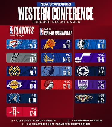 Le vittorie delle prime cinque in classifica mantiene invariate le posizioni, mentre è solamente Chicago ad approfittare del ko delle quattro squadre che la precedono per avvicinarsi al 50% di vittorie con la striscia di successi aperta più lunga della conference (tre partite)