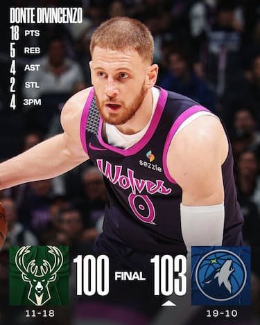 Per ottenere la nona vittoria nelle ultime 11 partite servono due triple cruciali di Donte DiVincenzo e Terrence Shannon Jr ai T’Wolves, che piegano così la resistenza dei Bucks. Anthony Edwards fatica al tiro (7/24) ma guida comunque i suoi con 24 punti a referto, resistendo alla tripla doppia sfiorata da Kevin Porter Jr con 24 punti, 10 rimbalzi e 9 assist. Dopo aver cominciato la stagione con un record di 8-5, per i Bucks sono arrivate 13 sconfitte nelle successive 16 gare