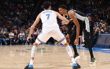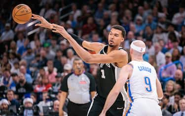 Non c’è solo agonismo, ovviamente, nella partita di Victor Wembanyama contro i Thunder, anzi. Non mancano le giocate clamorose, come la finta di tiro che nel 3° quarto si trasforma in un assist spettacolare per Dylan Harper, che ringrazia e segna un canestro persino troppo facile
