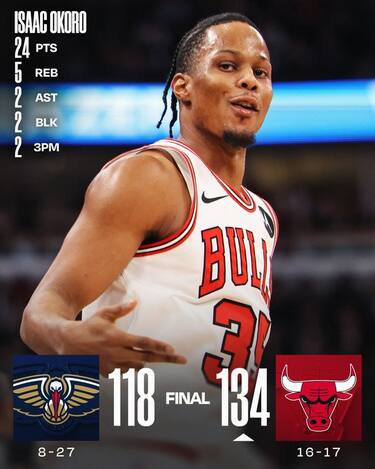 I Bulls alle prese con gli infortuni di Giddey e White pescano dal mazzo il miglior Isaac Okoro della stagione, autore di 24 punti insieme ai 20 di Tre Jones per battere i Pelicans. In totale sono otto i giocatori di Chicago in doppia cifra, utili per respingere i 31 realizzati da Zion Williamson e i 26 di Jordan Poole, senza riuscire a evitare la quinta sconfitta consecutiva dei Pelicans dopo averne vinte cinque in fila a metà dicembre