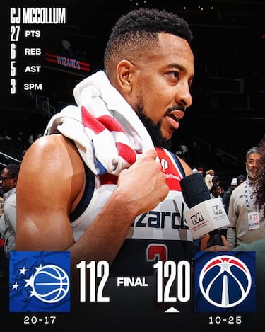 Gli Wizards confermano il loro ottimo momento di forma (5 vittorie nelle ultime 7) andando avanti anche di 26 contro Orlando, resistendo alla rimonta degli ospiti e portando a casa il successo grazie all’esperienza di CJ McCollum (27 punti) e i 23 di Alex Sarr. Per i Magic si confermano i problemi di continuità, visto che non vincono due gare in fila dall’1 dicembre e non vanno oltre i 20 del rookie Jase Richardson dalla panchina