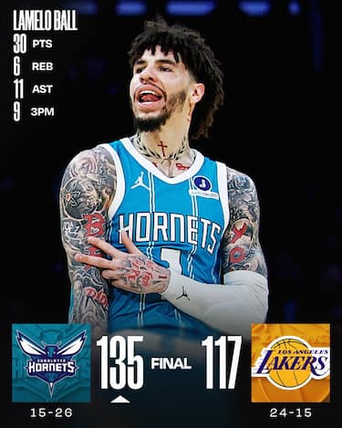 Dopo la bruta caduta a Sacramento, i Lakers incappano nella 4^ sconfitta nelle ultime 5 partite perdendo contro un’altra delle peggiori squadre della lega, classifica alla mano. I padroni di casa partono bene, hanno 39 punti da Luka Doncic e 29 da LeBron James, ma la fase centrale della gara è tuta di Charlotte, che con un LaMelo Ball da 30 punti, 11 assist, 6 rimbalzi e 9/17 al tiro dalla lunga distanza piazza un colpo in trasferta importante quanto inaspettato
