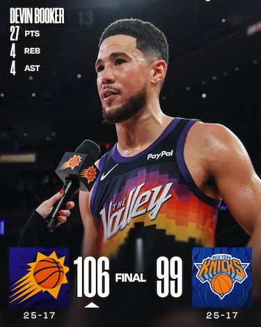 Il ritorno in campo di un Devin Booker da 27 punti spinge i Suns al successo al Madison Square Garden, approfittando dei mille problemi dei Knicks in questo ultimo mese di partite. A Booker si aggiungono i 16 di Grayson Allen e i 14 di Mark Williams, mentre i Knicks privi di Brunson e Hart non vanno oltre i 23 a testa di Karl-Anthony Towns e Deuce McBride, perdendo l’ottava partita nelle ultime 10 complice anche l’1/10 da tre con cui hanno tirato nel quarto periodo