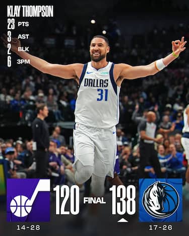 Klay Thompson firma un primo tempo da 23 punti e raggiunge quota 17.000 punti in carriera, guidando i Mavs al secondo successo consecutivo sui Jazz anche senza Cooper Flagg, Anthony Davis e PJ Washington. Brandon Williams e Max Christie ne segnano 22 a testa, mentre ai Jazz non servono i 29 di Keyonte George e i 25 di Brice Sensabaugh, dovendo sempre fare a meno di Lauri Markkanen per influenza