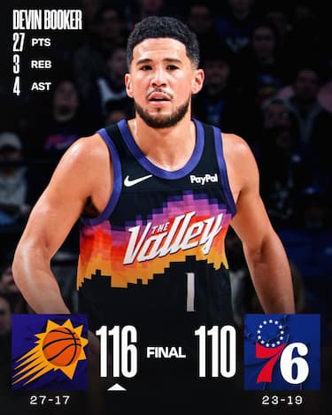 Dodicesima vittoria nelle ultime 16 per i Suns, che vengono guidati dai 27 punti di Devin Booker e ritrovano un Jalen Green da 12 punti alla sua terza presenza satagionale per conquistare il terzo successo in fila. Ai Sixers privi di Joel Embiid e Paul George non bastano i 25 di VJ Edgecombe e i 20 di Tyrese Maxey per evitare la quarta sconfitta nelle ultime sei gare, pagando i 40 punti concessi agli avversari nel terzo quarto e la disparità dalla panchina (58-28 in favore dei Suns)