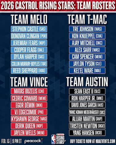 Nella giornata di ieri erano stati resi noti i nomi dei convocati per il Rising Stars che si terrà all’All-Star Game tra poco più di due settimane, e nella notte i coach designati per le quattro squadre di giovani stelle che si affronteranno a Los Angeles hanno fatto le loro scelte. Ecco i roster completi di Team Melo, Team T-Mac, Team Vince e Team Austin
