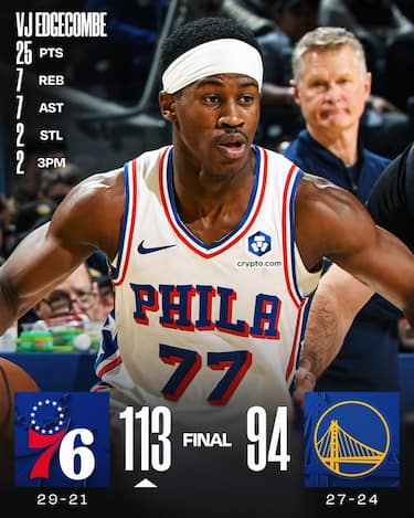Bel colpo in trasferta dei Sixers, che dominano il secondo tempo in casa degli Warriors trascinati dai 25 punti, 7 rimbalzi e 7 assist di uno scatenato VJ Edgecombe e travolgono una versione assai poco combattiva di Golden State, che colleziona ben 20 palle perse crollando in maniera evidente dopo l’intervallo lungo