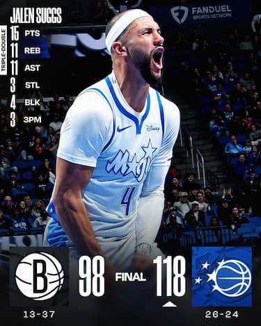 Nessun problema per i Magic, che contro Brooklyn dominano fin dal 1° quarto e si godono una serata finalmente felice sulle spalle di Desmond Bane e Paolo Banchero, autori rispettivamente di 23 e 22 punti. Prestazione pigra invece da parte dei Nets, che però, si consolano con la costante crescita del rookie Egor Demin, migliore dei suoi con 26 punti e 8/12 dal campo