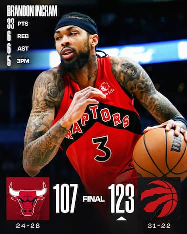 È un Brandon Ingram ispiratissimo e autore di una prova da 33 punti, 6 assist e 6 rimbalzi a guidare Toronto alla netta vittoria sui Bulls. Chicago paga il prezzo delle tante trade eseguite negli ultimi giorni e gioca una partita un po’ confusionaria, ma trova almeno i buoni esordi dei volti nuovi Anfernee Simons (22 punti) e Guerschon Yabusele (15 punti e 11 rimbalzi in uscita dalla panchina)