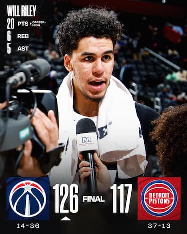 La prima sorpresa della notte arriva da Detroit, dove alla capolista della Eastern Conference non bastano i 30 punti, 8 assist e 8 rimbalzi del solito Cade Cunningham per battere una versione assai rimaneggiata degli Wizards. Washington, tra infortunati e giocatori in attesa di poter scendere in campo dopo essere arrivati via trade nelle ultime ore, manda a referto solo 10 giocatori, ma ha ancora nel rookie Will Riley, autore di 20 punti in uscita dalla panchina, il suo trascinatore