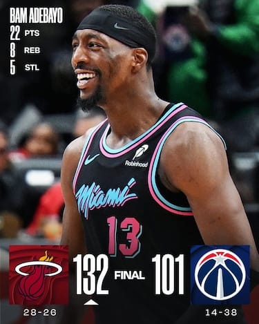 Tutto facile per gli Heat, che a Washington cambia passo nel 2° quarto, chiuso con un parziale di 37-19, e poi amministra senza problemi fino alla sirena finale. Bam Adebayo guida i suoi con una prestazione da 22 punti, 8 rimbalzi e ben 5 palle rubate, mentre il rookie Kasparas Jakucionis approfitta dello spazio concessogli per mettere 22 punti e distribuire 6 assist in 26 minuti giocati