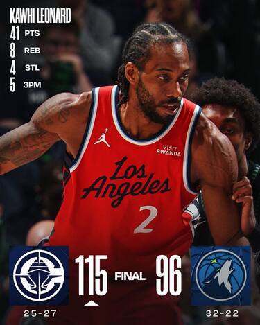 Nella netta vittoria esterna dei Clippers c’è prima di tutto la firma di Kawhi Leonard, che sul campo di Minnesota scava il divario tra le due squadre con una prestazione da 41 punti, 7 rimbalzi e 5/11 dalla lunga distanza. E nei passaggi chiave della gara, l’ex San Antonio e Toronto si prende cura di Edwards in difesa