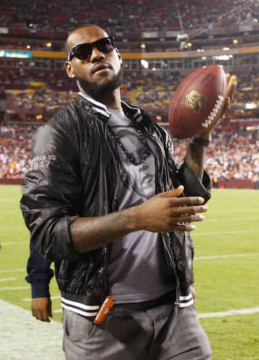 Prima di dedicare tutte le sue forze alla palla a spicchi, 'King' James è stato anche un fenomeno della palla ovale, tanto che secondo molti sarebbe potuto arrivare fino alla National Football League. Oggi quel suo primo amore non è svanito, tanto che non è raro vederlo a bordo campo con una maglia da football o addirittura in tribuna a seguire qualche partita dei 'suoi' Dallas Cowboys