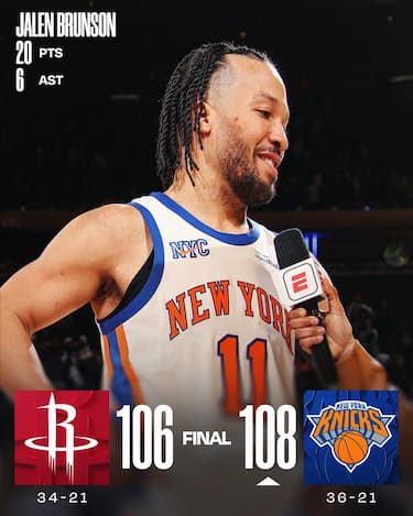 In casa contro Houston i Knicks vanno sotto anche di 18 punti, vengono fischiati sonoramente dai loro tifosi, chiudono la gara con un parziale di 33-13 e la rimonta dei padroni di casa viene suggellata dal tiro finale complicatissimo sulla sirena di Kevin Durant (30 punti e 6 assist), che potrebbe beffare il Madison Square Garden ma non tocca nemmeno il ferro. New York, quindi, dopo tanta sofferenza può festeggiare una vittoria tanto sudata quanto importante per il morale e per la classifica