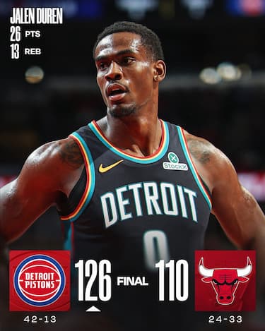 Tutto facile e tutto come da pronostico anche per Detroit, che a Chicago usa i primi due quarti per prendere le misure agli avversari e dopo l’intervallo lungo mette le mani sulla partita grazie soprattutto ad un Jalen Duren autentico dominatore del pitturato e autore di una prova da 26 punti, 13 rimbalzi e 12/20 dal campo. I Bulls hanno 27 punti da Josh Giddey, ma quando i Pistons alzano i giri del motore rimangono nettamente indietro senza più dare l’impressione di poter recuperare