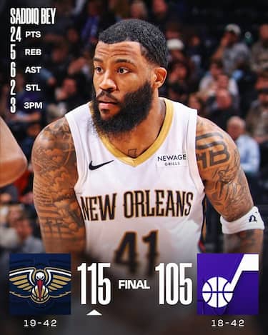 La buona notizia per i Pelicans è la quarta vittoria consecutiva, spinta dai 24 punti di Saddiq Bey e dai 18 a testa di Jeremiah Fears e Bryce McGowens. La cattiva è l’infortunio di Zion Williamson, che esce nel secondo quarto per una distorsione alla caviglia con tempi di recupero ancora da diagnosticare. Un parziale di 15-0 in favore di New Orleans chiude però già i conti nel secondo quarto, coi Jazz che non vanno oltre i 21 punti di Isaiah Collier e non evitano il quinto ko consecutivo