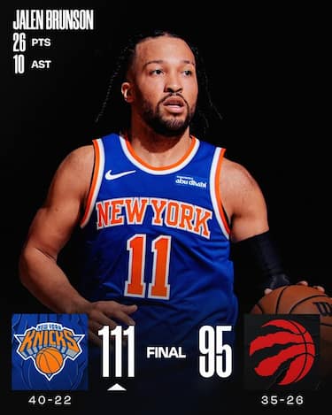 New York si conferma la bestia nera di Toronto battendola per la 12^ volta consecutiva, forti di un parziale di 16-2 nel quarto periodo che ha definitivamente indirizzato la partita nelle mani dei Knicks. Le doppie doppie di Jalen Brunson (26 punti e 10 assist) e Karl-Anthony Towns (21 con 12 rimbalzi) sono ingestibili per i canadesi, arrivati alla quarta sconfitta in fila in casa nonostante i 31 di Brandon Ingram e i 20 dell’ex RJ Barrett