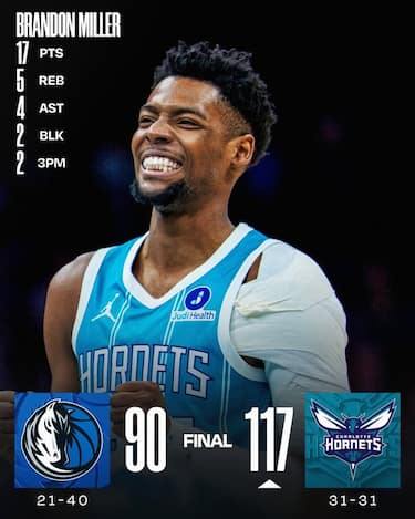 Quinta vittoria consecutiva e 15^ nelle ultime 18 per gli Hornets, che tornano a un record del 50% (31-31) per la prima volta dal 28 ottobre. Brandon Miller con 17 punti guida i suoi insieme ad altri sette compagni in doppia cifra, toccando anche il +27 nel corso del quarto periodo. Salta purtroppo la seconda sfida tra Cooper Flagg (ancora alle prese con un infortunio alla caviglia) e Kon Knueppel (in una serata opaca con 13 punti e 1// da tre), con Dallas che incappa in una serataccia al tiro (3/22 dall’arco)