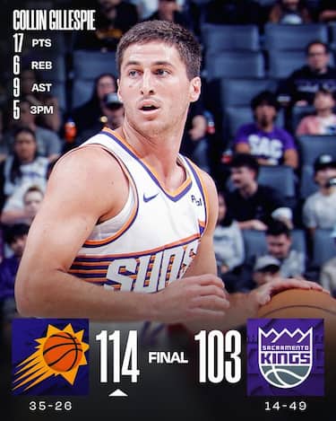 Quattro partite e quattro vittorie per i Suns ai danni dei Kings in questa stagione, godendosi anche il ritorno in campo di Devin Booker (17 punti di cui 14 nel primo tempo) insieme ai 20 di Jalen Green e i 18 di Grayson Allen. Un parziale di 14-0 nel terzo quarto indirizza la partita nelle mani di Phoenix, mentre Maxime Raynaud (22 punti e 10 rimbalzi) è l’ultimo ad arrendersi ma senza evitare la 49^ sconfitta stagionale di Sacramento