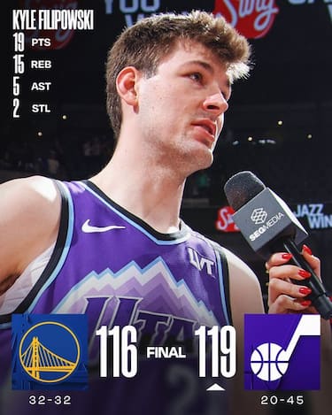Reduci da 8 sconfitte nelle ultime 9 partite, i Jazz si tolgono la soddisfazione di battere gli Warriors in una gara contrassegnata dalle assenze. Sono infatti i 21 punti di Brice Sensabaugh, i 19+15 di Kyle Filopowski e la tripla del sorpasso a 29.9 secondi dalla fine di Blake Hinson a guidare i padroni di casa, mentre gli ospiti non vanno oltre i 22 di De’Anthony Melton perdendo la quarta partita nelle ultime cinque