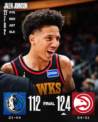 Contro Dallas gli Hawks danno lo strappo decisivo nella fase centrale della partita e, sulle spalle di Nickeil Alexander-Walker (29 punti) e Jalen Johnson (27), confermano il loro ottimo momento cogliendo la 7^ vittoria di fila. Klay Thompson prova a tenere a galla i Mavs, ma i suoi 21 punti in uscita dalla panchina servono a poco