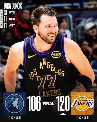 Vittoria importante per il morale e per la classifica per i Lakers, che hanno 31 punti a testa da Austin Reaves e Luka Doncic, anche in tripla doppia con 11 rimbalzi e 11 assist, e battono nettamente Minnesota. I Timberwolves, invece, pagano prima di tutto la serataccia al tiro (2/15 per 14 punti) di un Anthony Edwards quasi irriconoscibile