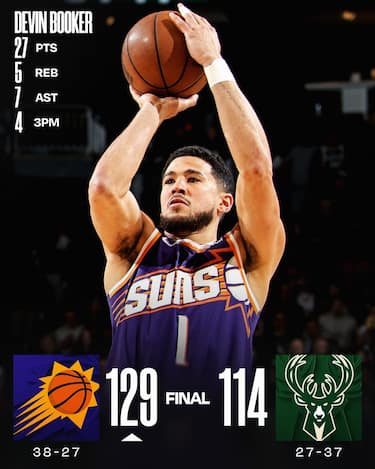 Ai Bucks non basta il miglior Kyle Kuzma della stagione, che aggiunge i suoi 33 punti ai 22 di Giannis Antetokounmpo, perché Phoenix, guidata dalla coppia formata da Devin Booker (27 punti) e Jalen Green (25), dimostra un tasso tecnico superiore e accelera nel secondo tempo portandosi a casa una convincente vittoria in trasferta