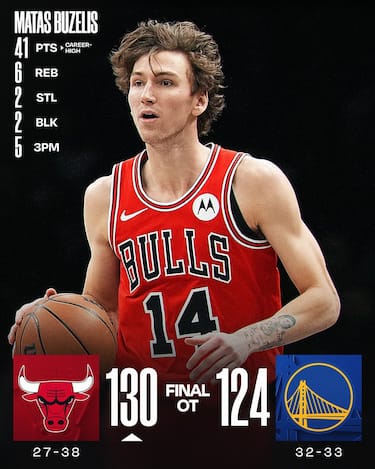 Sconfitta pesante e dolorosa per gli Warriors, che cadono in casa dopo un supplementare sotto i colpi di un Matas Buzelis autore del suo career high a quota 41 punti. Golden State ha 7 giocatori in doppia cifra, ma nell’overtimeriesce a segnare soli 6 punti