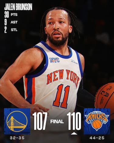 Occorrono un Jalen Brunson da 30 punti e 9 assist e un Karl-Anthony Towns da 17 punti e 12 rimbalzi ai Knicks per battere Golden State al termine di una partita ben più combattuta di quanto fosse pronosticabile alla vigilia. New York va sotto anche di 21 prima di cambiare marcia nel secondo tempo, mentre gli Warriors sfiorano solo il colpaccio con Brandin Podziemski (25 punti) e Quniten Post (22) a prendersi il palcoscenico in assenza dei tanti titolari infortunati per coach Steve Kerr