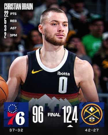 Denver tiene il passo di Minnesota avendo vita facile contro una versione estremamente rimaneggiata dei Sixers. Nikola Jokic non raggiunge la doppia cifra né per punti (8) né per rimbalzi (7), ma distribuisce 14 assist che fanno felici i vari Christian Braun (22 punti) e Cameron Johnson (18), per una sera i due migliori realizzatori di squadra. A Philadelphia non bastano i 16 di MarJon Beauchamp in una serata da 22% di squadra da tre