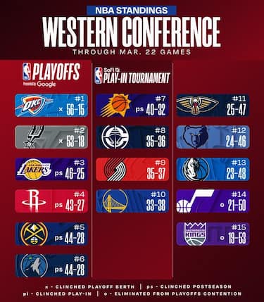 Molte posizioni sono ancora da definire, compresi gli incroci del play-in, ma a meno di un mese dall'avvio dei playoff il quadro delle sfide tra Ovest e Est comincia a definirsi