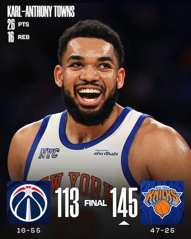 Tutto facile, come da pronostico, per i Knicks, che contro Washington hanno Karl-Anthony Towns in doppia doppia con 26 punti e 16 rimbalzi e 23 punti da Jalen Brunson e comandano dall’inizio alla fine senza dare nemmeno l’impressione di premere sull’acceleratore. Nell’ennesima serata anonima, ad animare un po’ gli Wizards è invece Jaden Hardy, che entra dalla panchina e segna 25 punti che però servono a poco