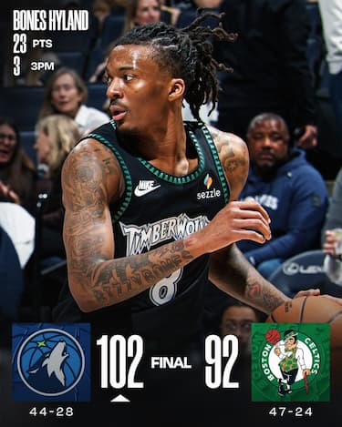 I Timberwolves, sempre privi della loro stella Anthony Edwards, giocano una grande gara difensiva e passano a Boston, dove non vincevano da più di vent’anni. La 35^ tripla doppia della stagione di Nikola Jokic trascina Denverall’importante vittoria su Portland, mentre Phoenix travolge Toronto e New York fa lo stesso con Washington. È invece uno scatenato Malik Monk a regalare ai Kings la vittoria sui Nets. Tutti i risultati e gli highlights della notte NBA