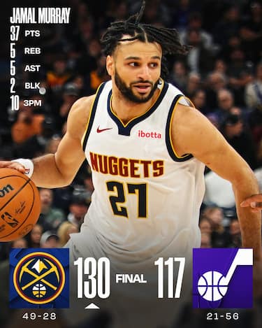7^ vittoria di fila per i Nuggets, che sul campo di Utah passeggiano grazie ai 37 punti con 10/16 al tiro dalla lunga distanza di un ispiratissimo Jamal Murray e alla tripla doppia da 15 punti, 17 rimbalzi e 12 assist di un Nikola Jokicfinalmente in buone condizioni fisiche. Ai Jazz, invece, serve a poco la doppia doppia da 25 punti e 12 rimbalzi di Kyle Filipowski