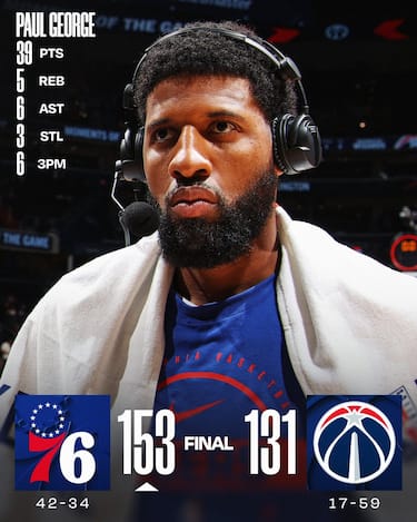 Non c’è Joel Embiid per i Sixers in trasferta a Washington, ma a trascinare la squadra alla vittoria ci pensa il miglior Paul George della stagione, autore di una prova da 39 punti con 15/22 dal campo, coadiuvato da Tyrese Maxey (29 punti e 9 assist) e VJ Edgecombe (23 punti e 10 assist). Philadelphia cambia marcia dopo l’intervallo lungo e per gli Wizards, che pescano 21 punti in uscita dalla panchina da Anthony Gil, non c’è davvero nulla da fare