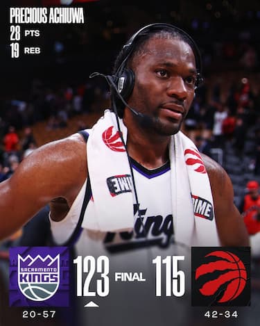 La prima sorpresa della notte arriva da Toronto, dove gli ex di serata DeMar DeRozan e Precious Achiuwa segnano 28 punti a testa e trascinano Sacramento ad una inaspettata vittoria in trasferta. Il rookie Collin Murray-Boyles prova a dare una scossa ai Raptors con i suoi 20 punti in uscita dalla panchina, ma per i padroni di casa arriva una sconfitta che rischia di pesare nella corsa aperta tra playoff e play-in a Est