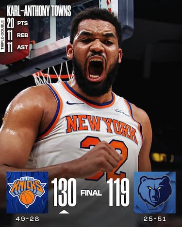 Nessun problema per i Knicks, che a Memphis controllano punteggio e ritmo di gioco fin dai primi possessi e vincono grazie alle ottime prove di OG Anunoby (25 punti e 13 rimbalzi) e Karl-Anthony Towns (20 punti, 11 rimbalzi e 11 assist). I Grizzlies si consolano con i 20 punti e l’8/12 dal campo di un GG Jackson ormai pienamente ritrovato dopo i tanti problemi fisici registrati negli ultimi due anni
